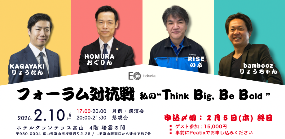 EO Hokuriku 2026年2月例会のお知らせ 2026年2月10日(火)富山で開催